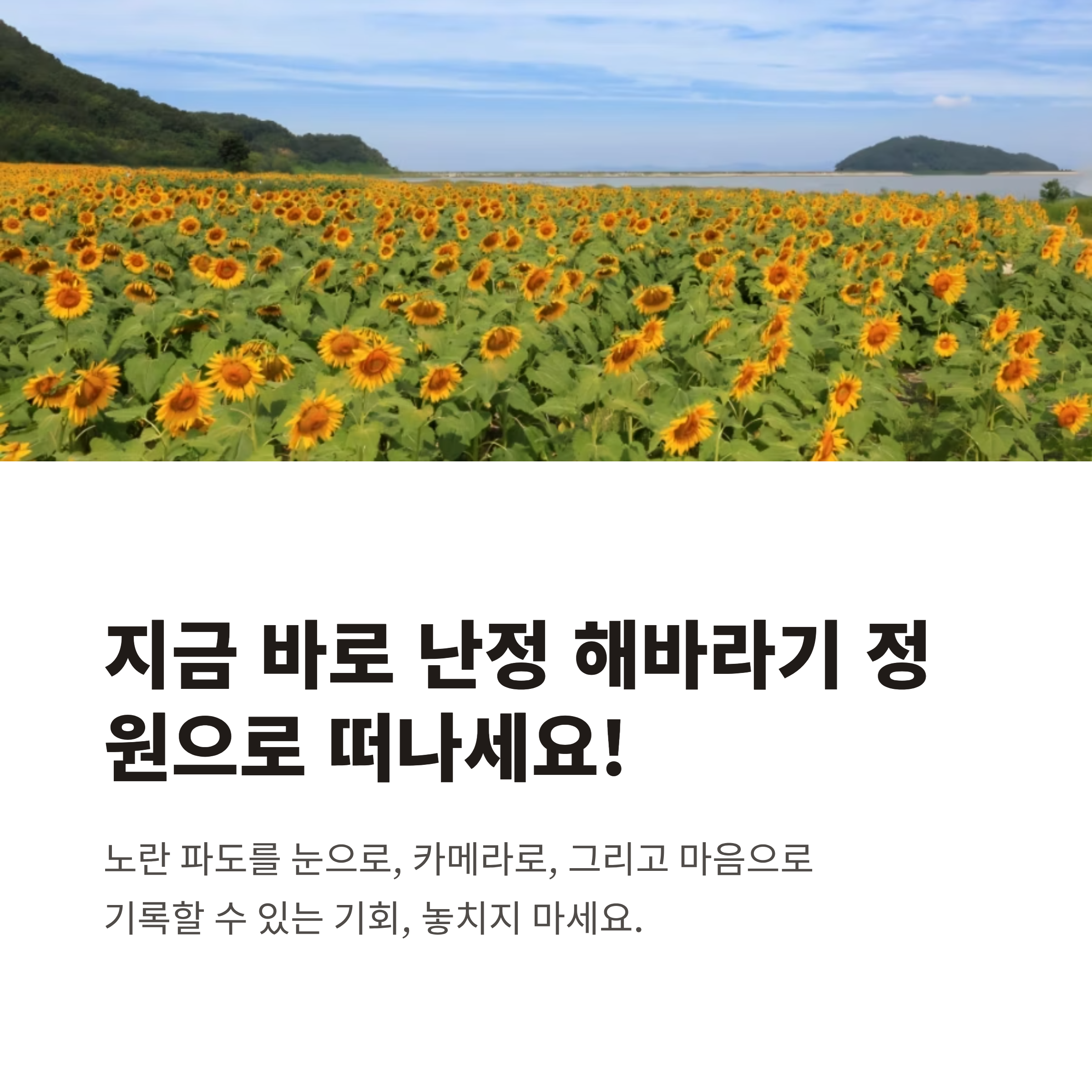 지금의 노란 파도를 눈으로, 카메라로, 그리고 마음으로 기록해두세요.