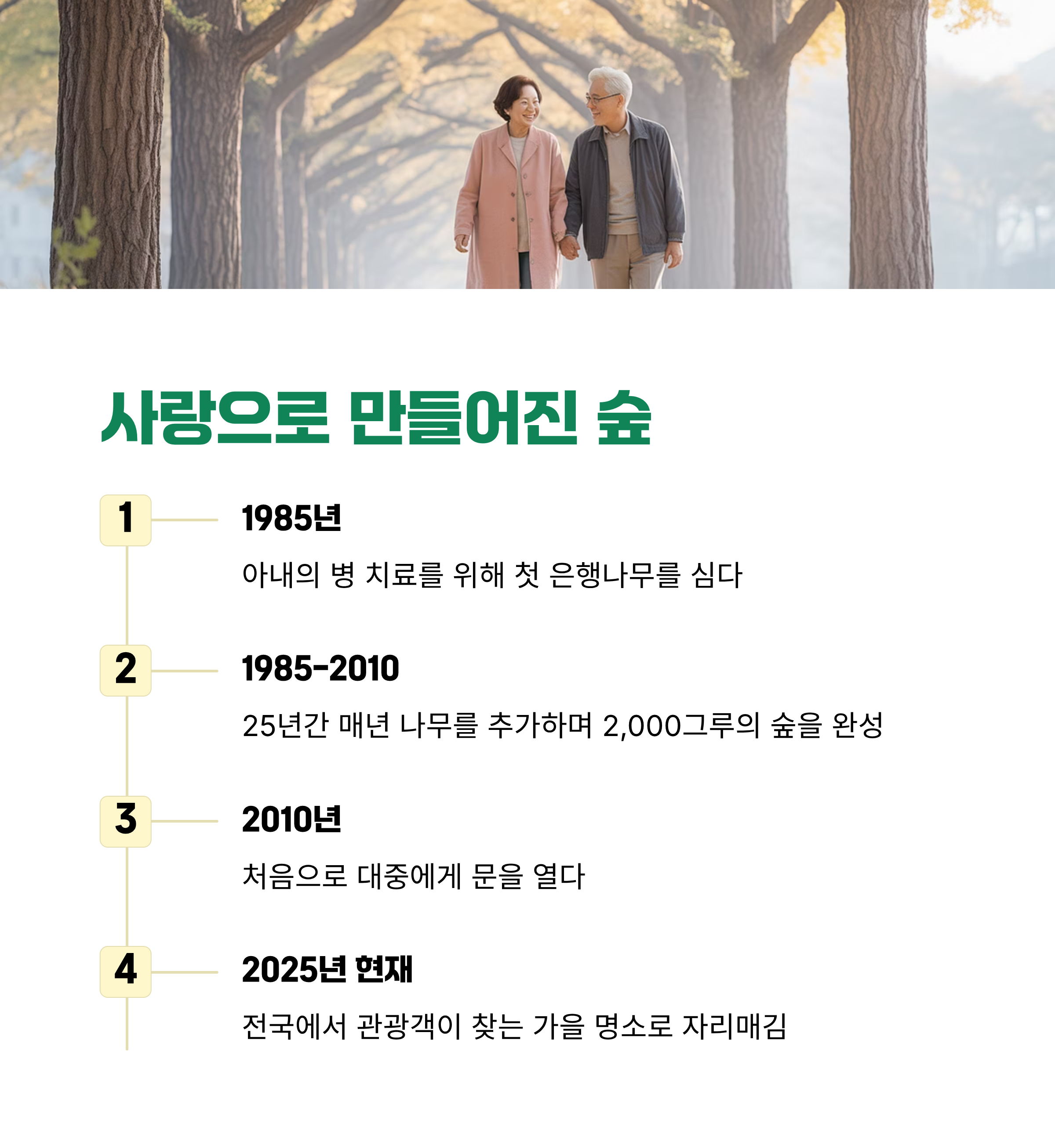 총 4만㎡ 부지에 약 2,000그루의 은행나무가 심어진 이 숲은 자연의 선물이 아니라,