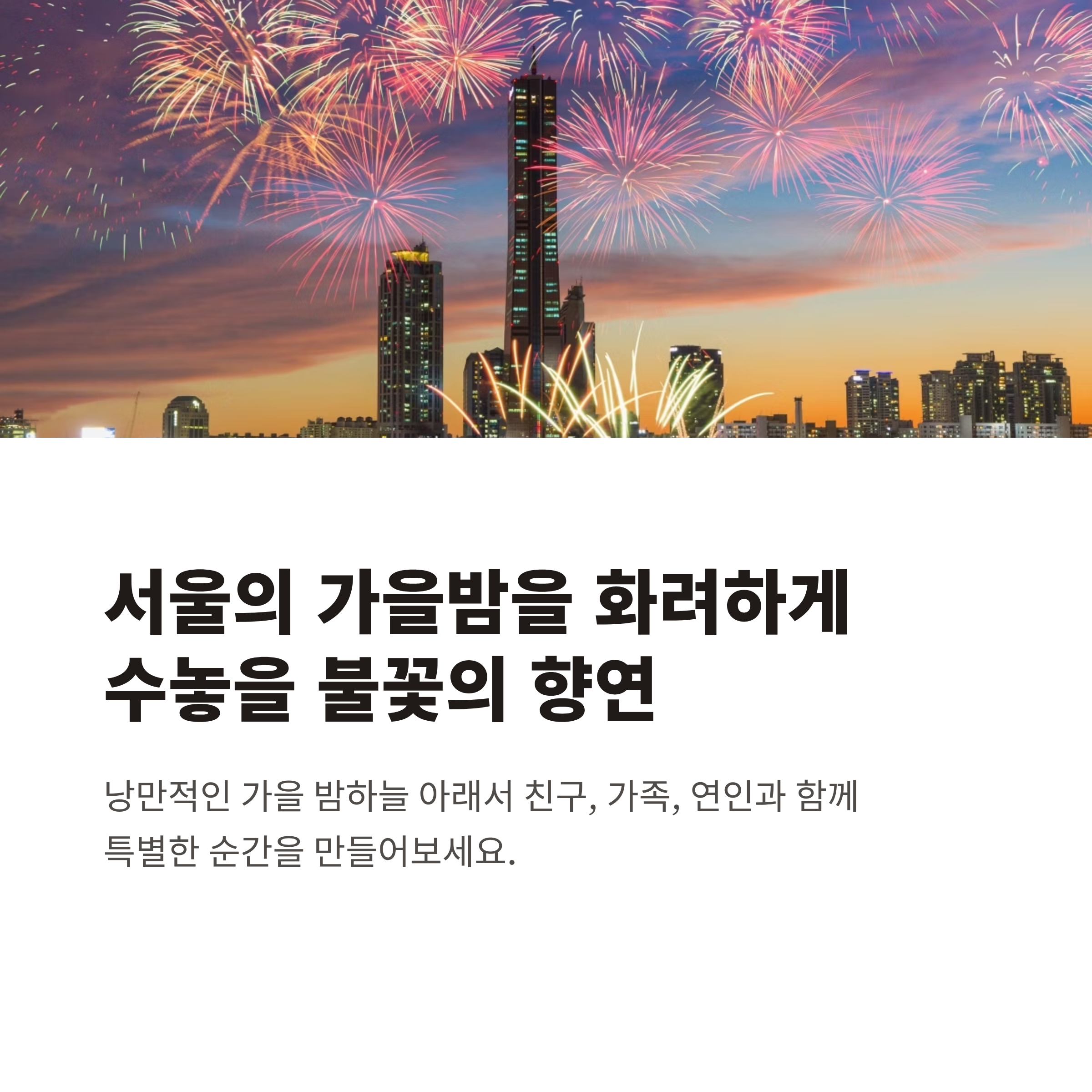 서울의 가을을 화려하게 수놓을 불꽃의 향연을 즐겨보세요.