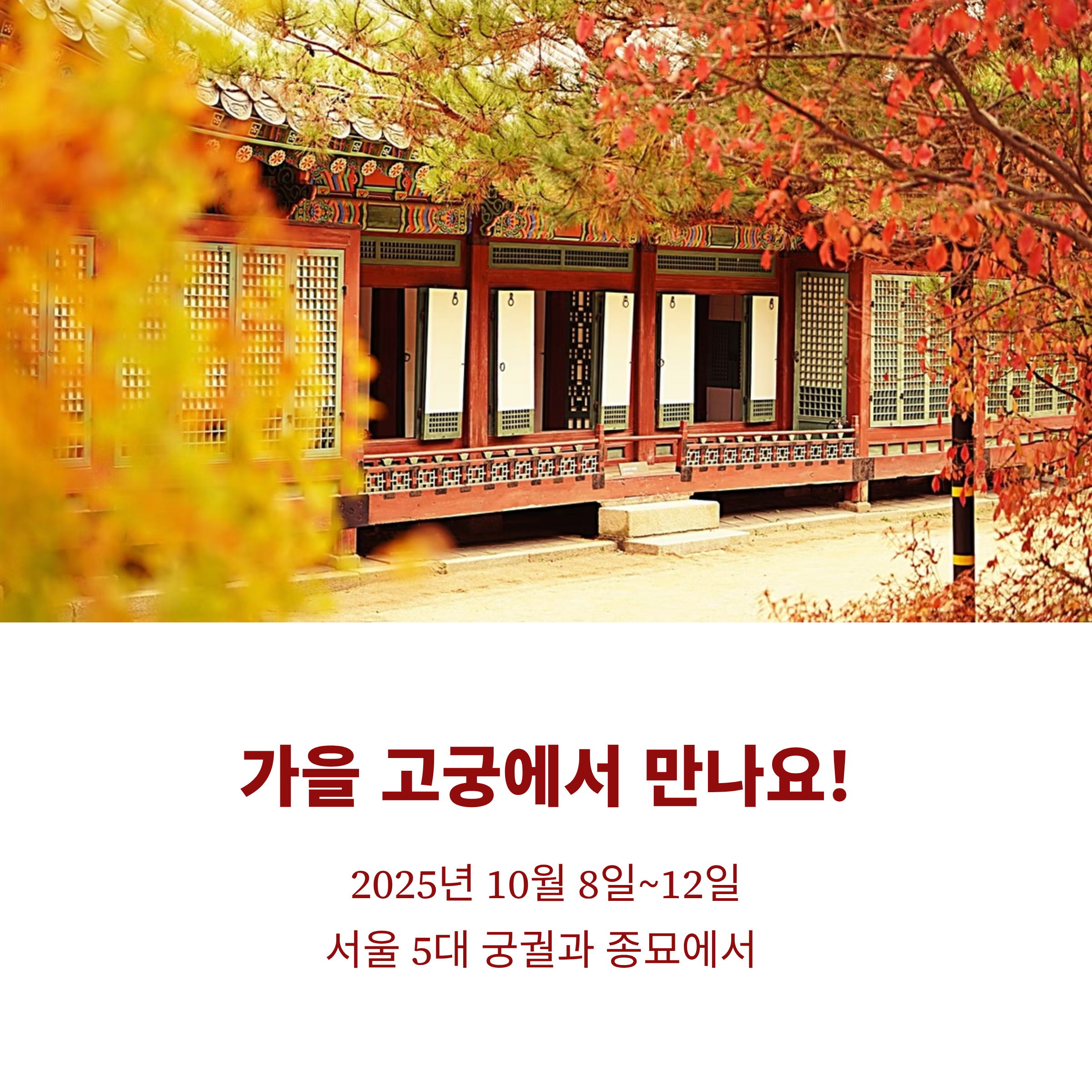 가을 고궁의 정취를 만끽할 수 있는 특별한 시간이 될 것입니다.