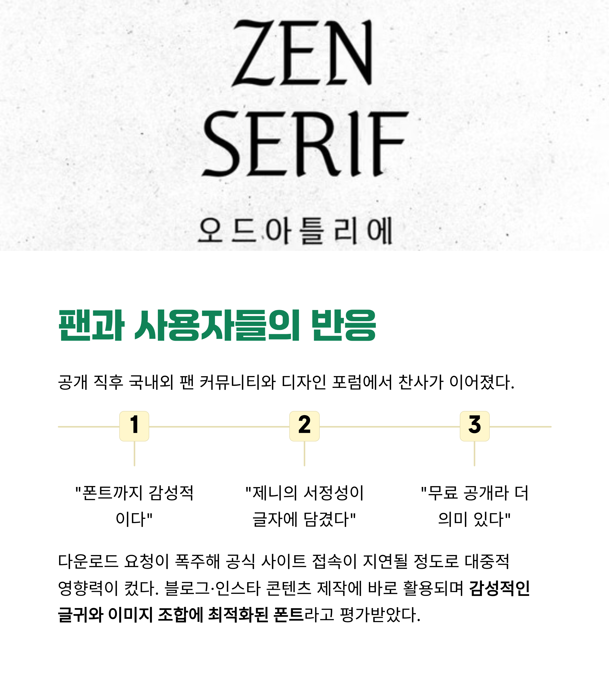 그 결과, 이번 한글날 ZEN SERIF는 ‘가장 예쁜 무료 폰트’를 넘어