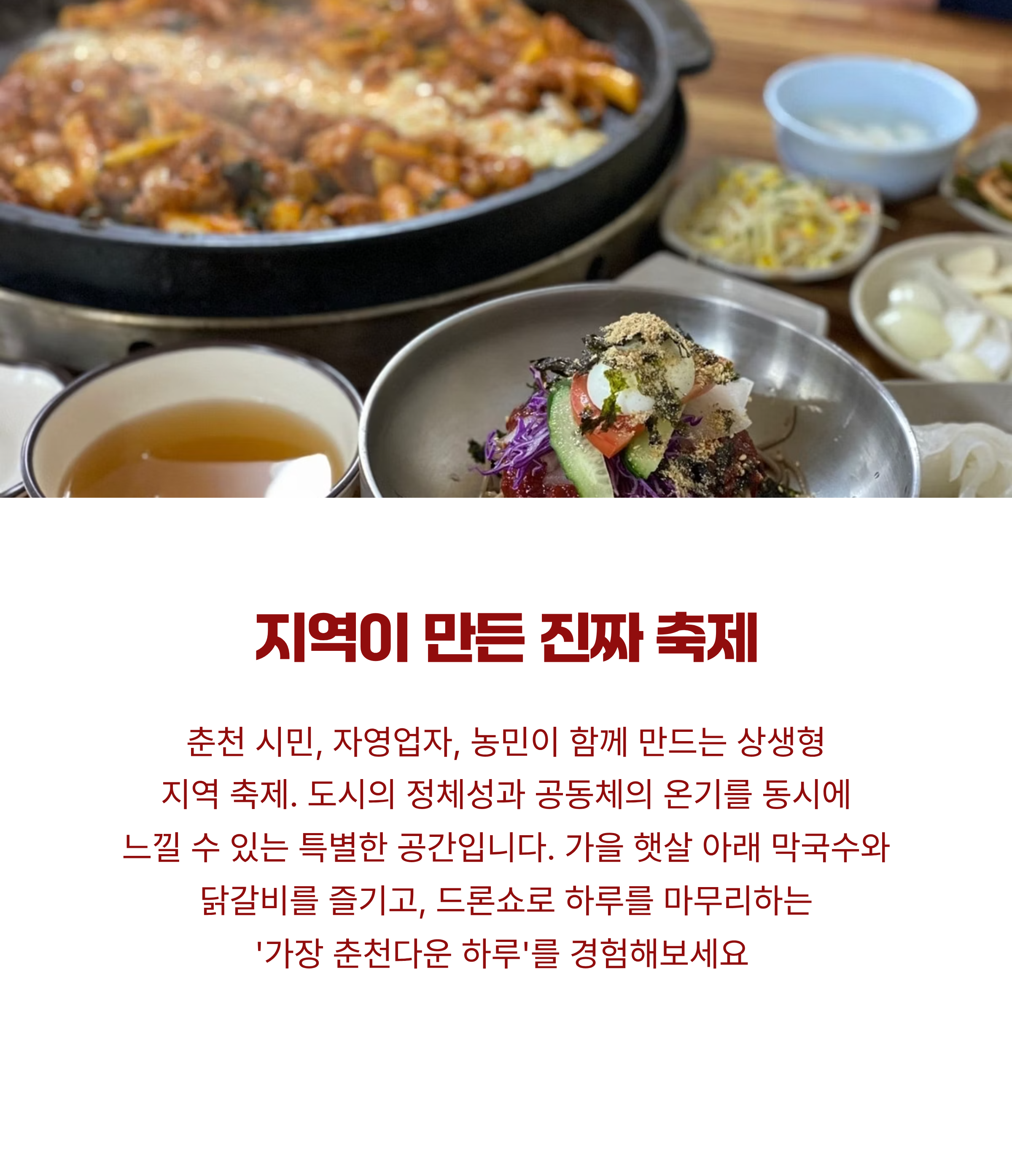 춘천 시민과 자영업자, 지역 농민이 함께 만들어가는 상생형 지역 축제다.