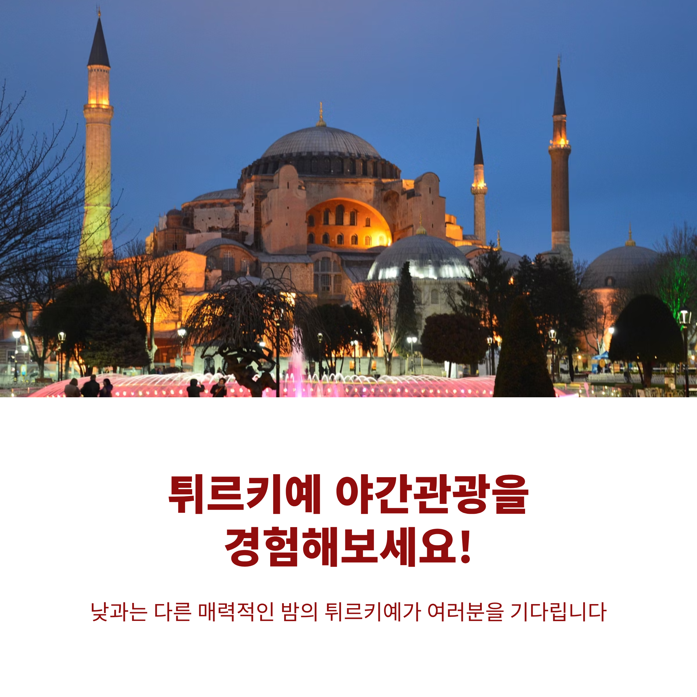 낮과는 전혀 다른 매력을 보여주는 이스탄불과 에게해 지역의 밤 풍경은 잊지 못할 경험을 선사합니다.