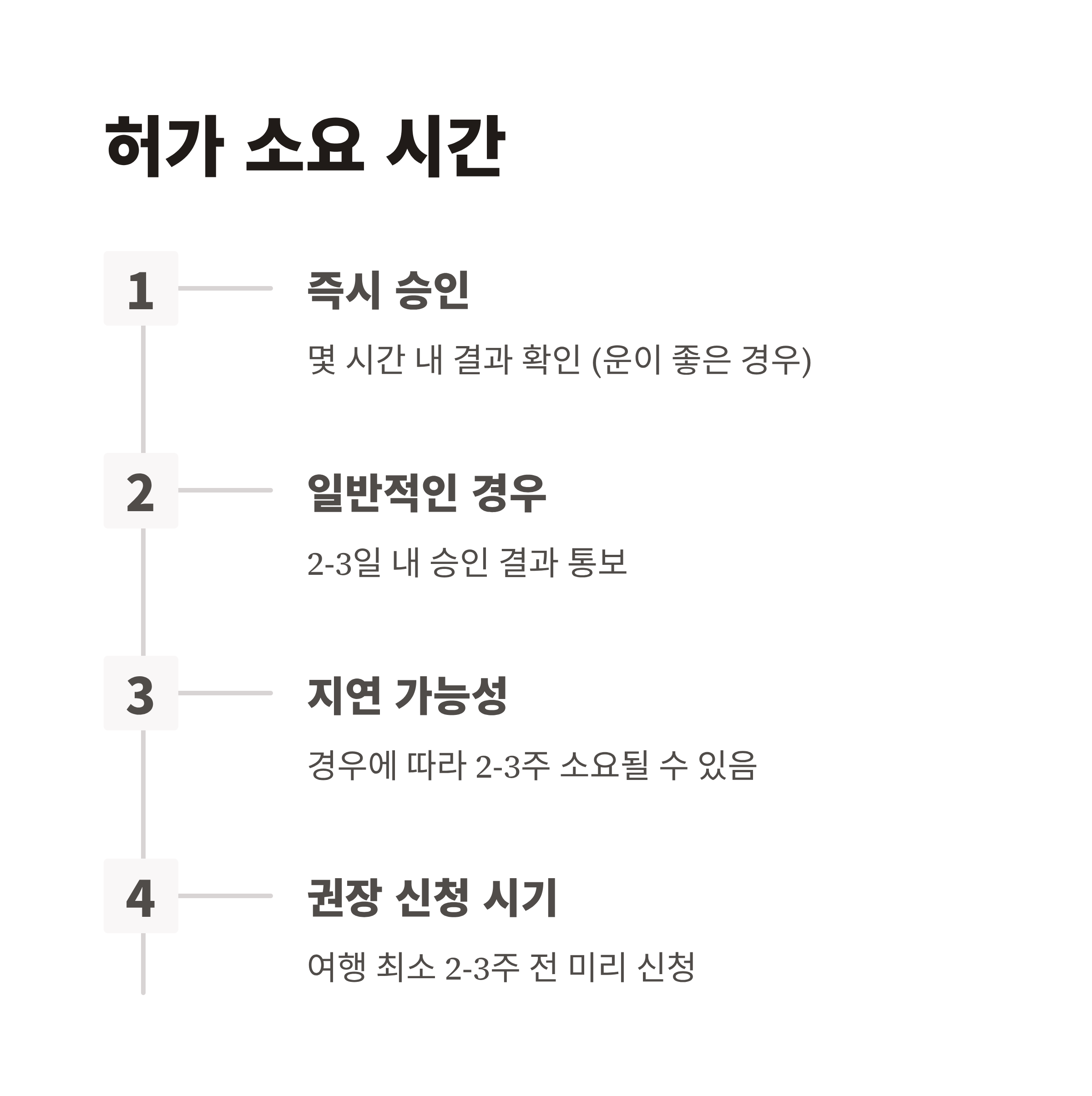 여행 일정보다 최소 2~3주 전에 신청하는 것이 안전합니다.
