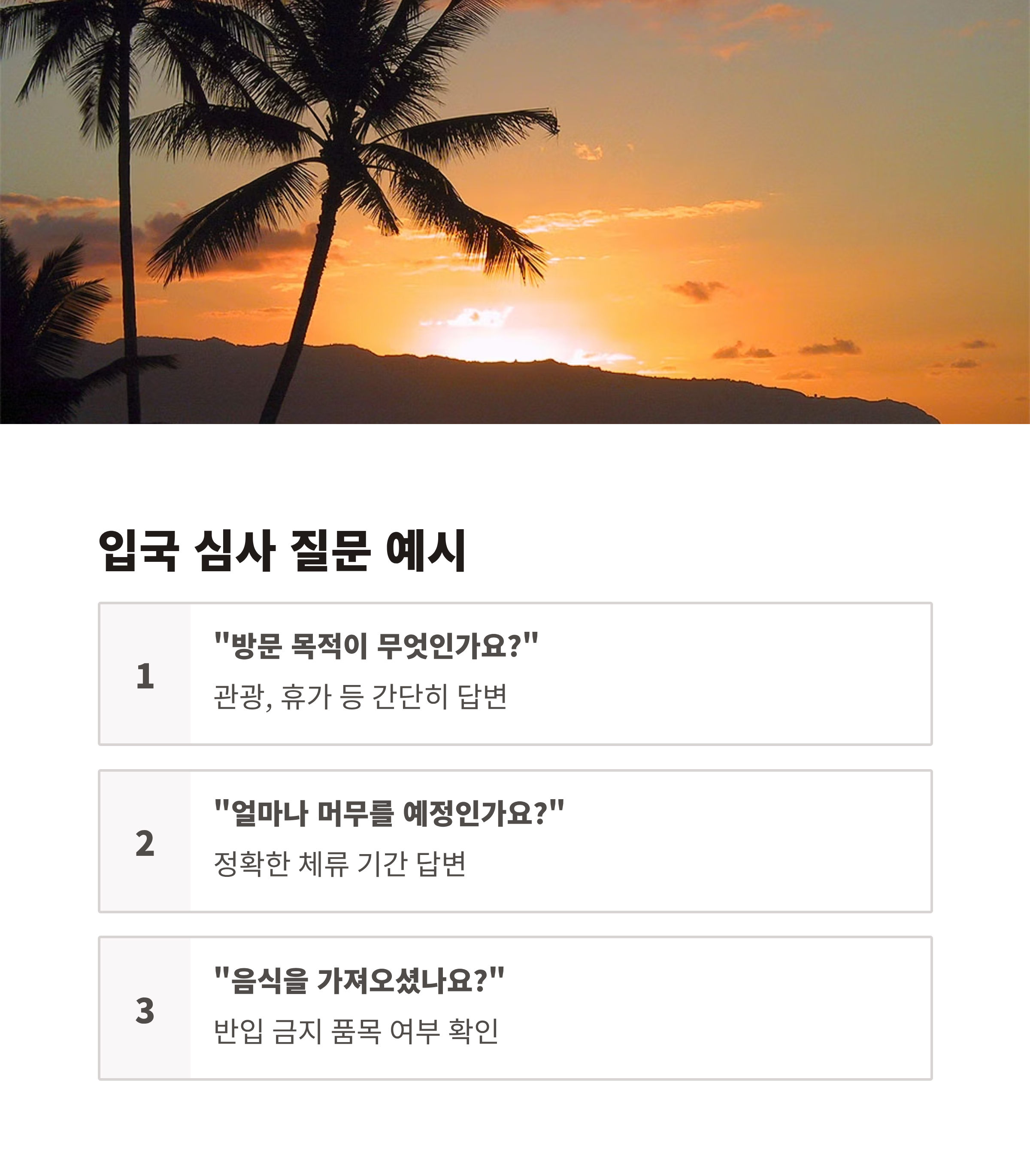 가족 단위로 함께 심사를 받으며 입국 목적, 체류 기간,