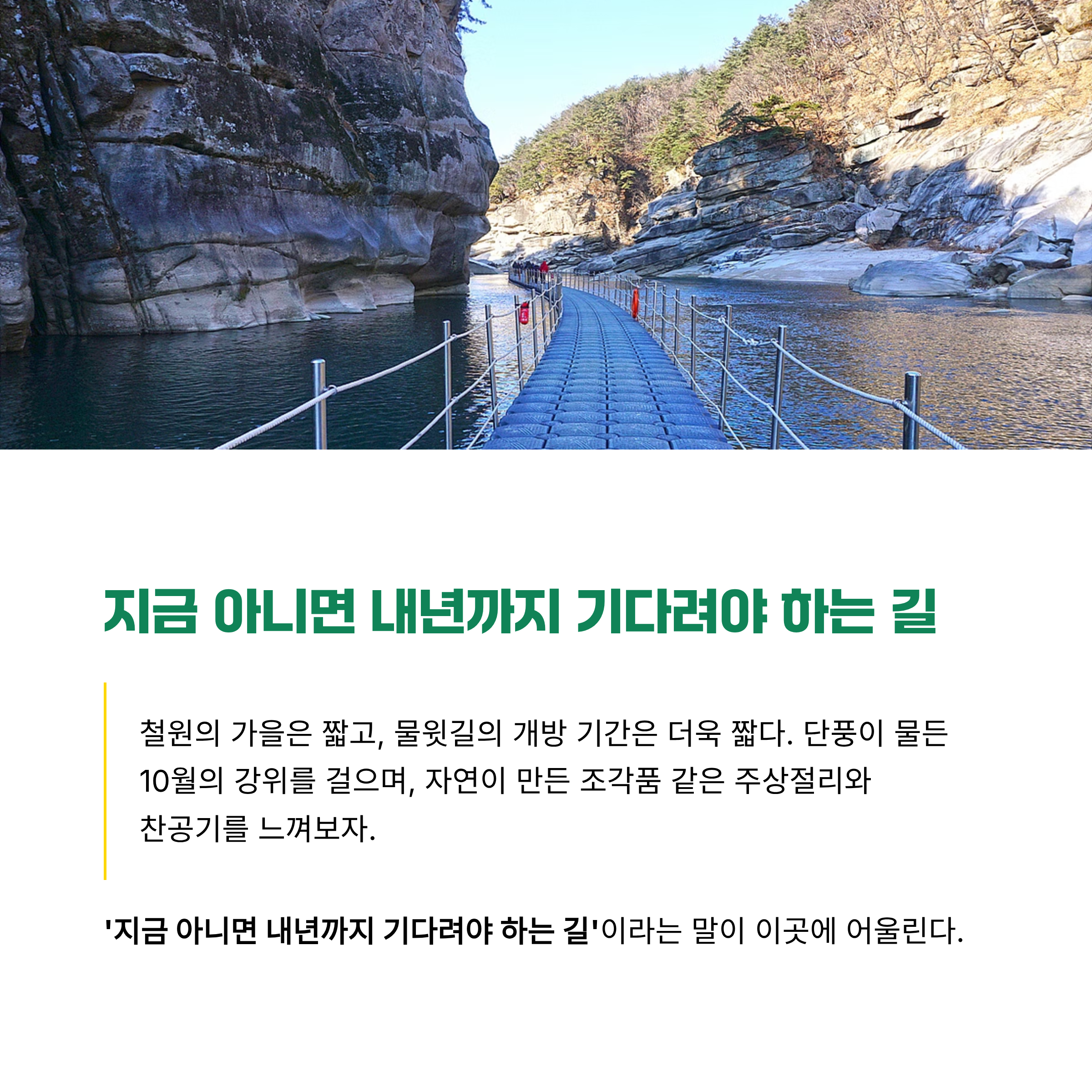 철원의 가을은 짧고, 물윗길의 개방 기간은 더욱 짧다.