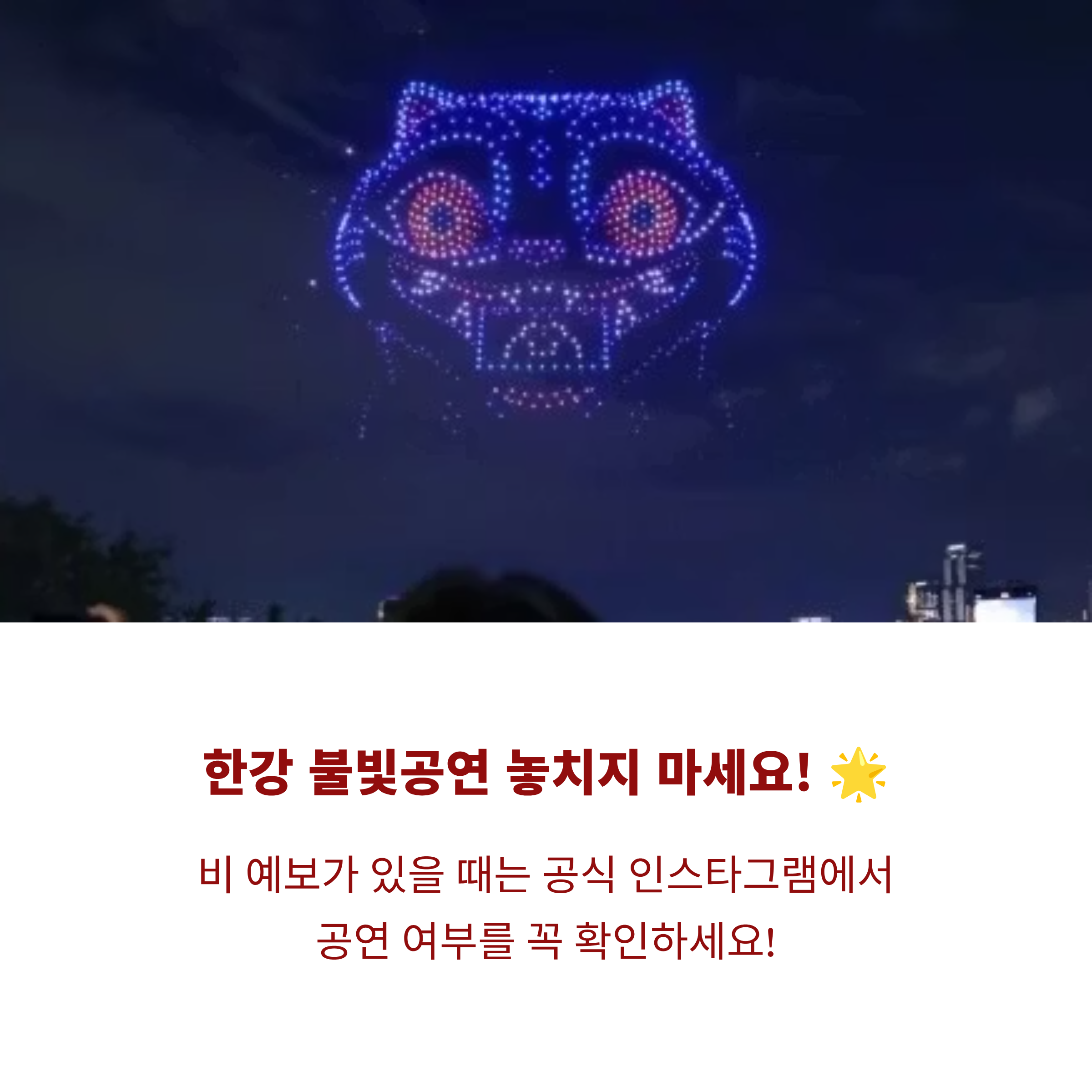 6. 우천 예보 확인: 드론은 비에 취약, 공연 연기 여부는 인스타그램 공식 계정에서 반드시 확인