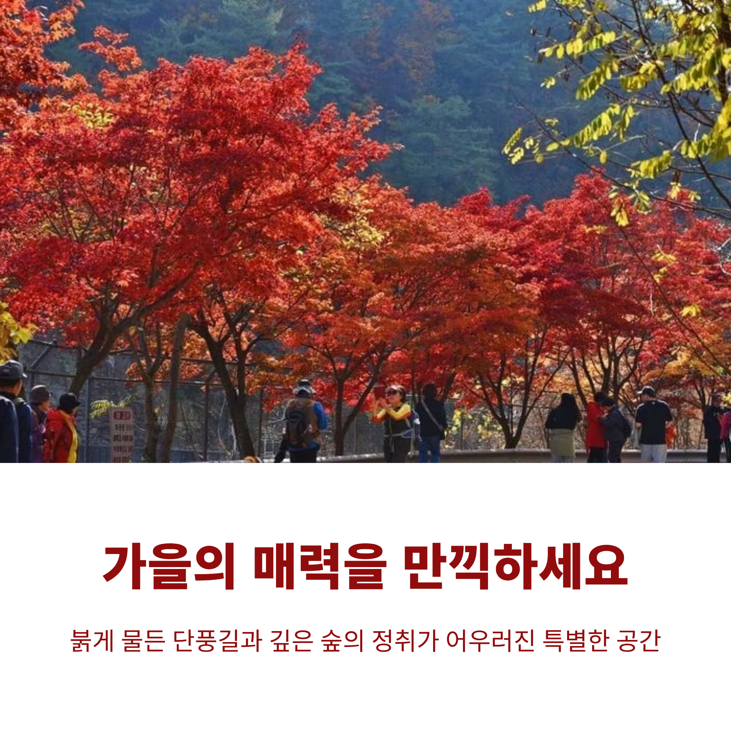 붉게 물든 단풍길과 깊은 숲의 정취가 어우러져